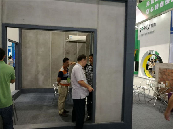 重慶市墻材協(xié)會(huì)易會(huì)長(zhǎng)來(lái)我司展位指導(dǎo)工作